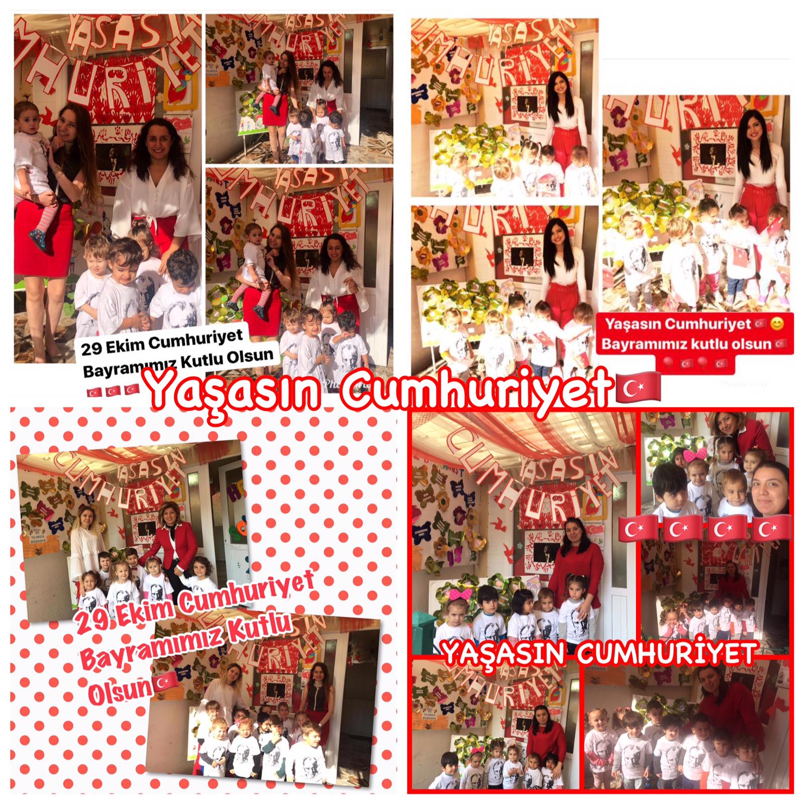 Yarının büyükleri olan dünya tatlısı çocuklarımızla Cumhuriyetimizin kuruluşunun 96. Yılını coşkuyla kutladık. Marş ,müzik ve bayraklar ile okullarımız neşe doldu.